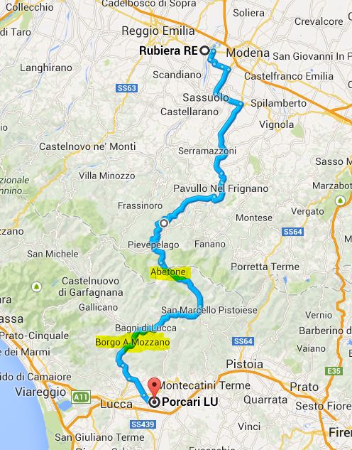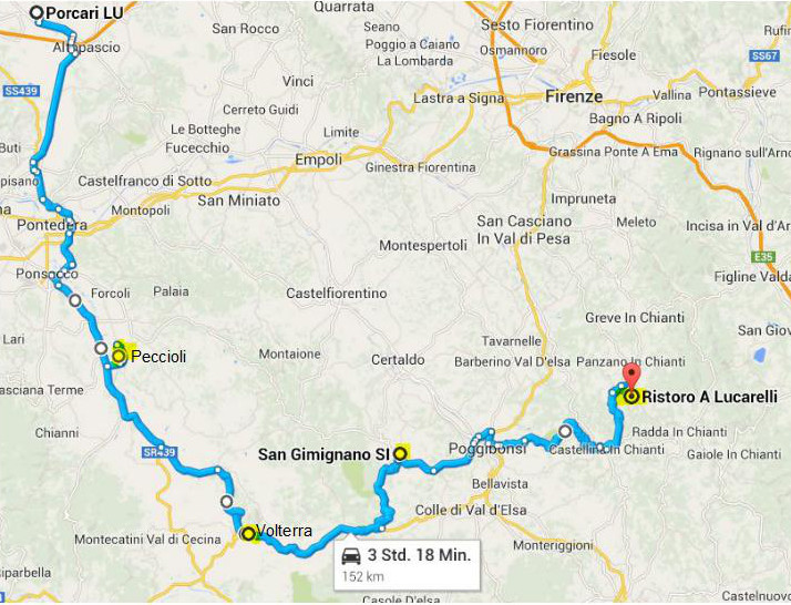 Am nächsten Morgen geht es auf der kurvenreichen strada statale 12 ins Gebirge bis auf 1400m über Abetone und dann hinunter in die Toskana. Unterwegs kommen wir an einer alten Steinbrücke in der Nähe von Borgo a Mozzano, der Ponte della Maddalena, vorbei.