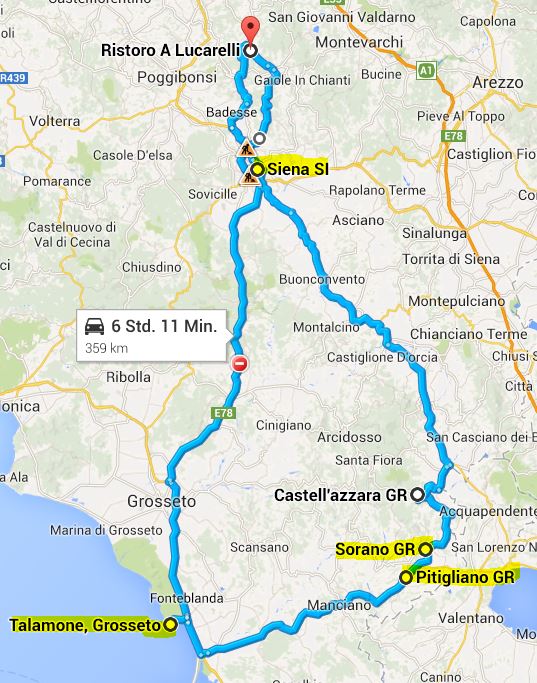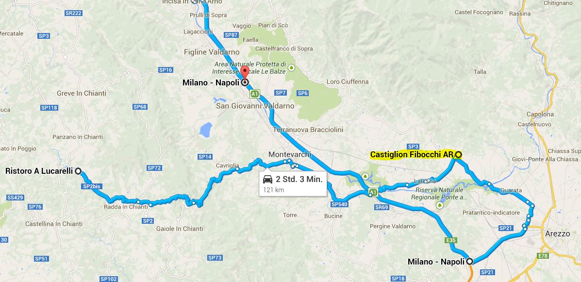 Sonntag, es ist trocken und wir dürfen wieder nach Hause. Aber vorher machen wir noch einen Abstecher nach Castiglion Fibocchi. Dort statten wir La Vialla, einem Landgut bei Arrezzo, einen Besuch ab. Mit Wein, Käse, Wurst und Olivenöl beladen, starten wir die Rückfahrt – bei strahlend blauem Himmel auf der ganzen Strecke...
