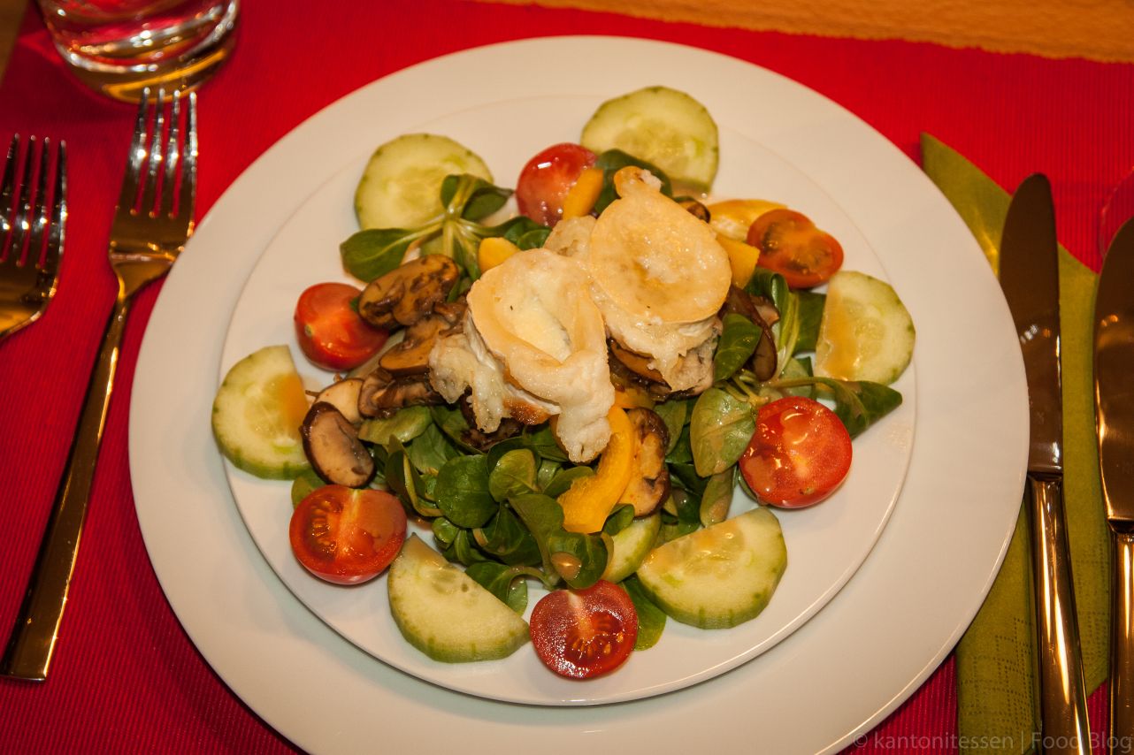 Feldsalat mit Pilzragout und gebackenem Ziegenkäse
